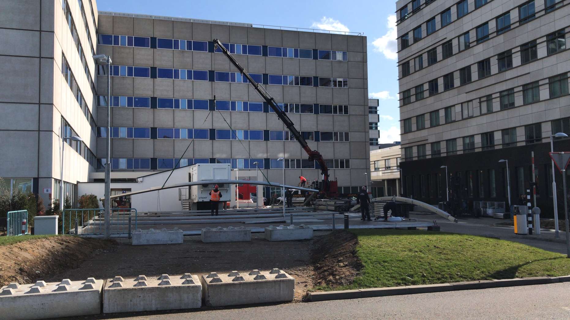 L’hôpital MUMC+ de Maastricht a souhaité disposer d’une grande structure d’accueil et de triage d’urgence. En effet, le nombre de personnes a accueillir pour le dépistage du virus Covid-19 a excessivement dépassé la prise en charge possible des infrastructures. Il était donc nécessaire d’intervenir le plus rapidement possible.